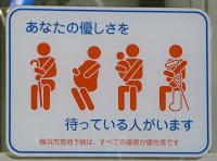 Mir ist wieder einmal aufgefallen, dass man in Japan wohlbehüteter zu sein scheint, als sonstwo…und das liegt definitiv nicht nur an unseren Japanischen Studenten - vielleicht aber daran, dass wir hier eigentlich nur tagsüber unterwegs sind. Oder die Kriminalität in Japan ist hier von einem ganz anderen Kalliber – ne andere Art…könnt auch sein, dass Japaner generell nicht kriminell zu Ausländern sind, vielleicht haben sie ja wirklich Angst. Oder sie sind einfach nicht kriminell. Allein gelassen wird man hier auch nicht und obwohl man Japan immer mehr Technikkram entwickelt und einführt, macht man wie in anderen Ländern nicht den Fehler und überlässt die Geräte den Menschen und sich selbst. Es steht immer irgendwo ein kleiner Mensch in irgendeiner Uniform herum, den man oft nicht einmal anzusprechen brauch, wenn etwas nicht stimmt, weil er dich 1. Die ganze Zeit beobachtet, 2. Sieht, wenn du ein Problem hast, 3. Dich auch ohne Worte versteht, weil Japaner ja Gedanken lesen. Inzwischen wissen wir auch, dass Japaner ganz normale Menschen sind, welche auch mal einfach an einem Schild stehend einschlafen können, einen Febel für Maskottchen haben und sich über die gleichen Späße amüsieren wie wir. Insofern, ein Hoch auf die Menschheit! Wir sind ja doch alle gleich, egal welchen Eindruck wir anfänglich zu haben scheinen. Hiermit revidiere ich feierlich alle eigenartigen Hintergedanken, welche bezüglich des Japanischen Völkchens aus den letzten Posts hervorgegangen sein mögen. Japaner sind ja auch kein homogenes Volk…